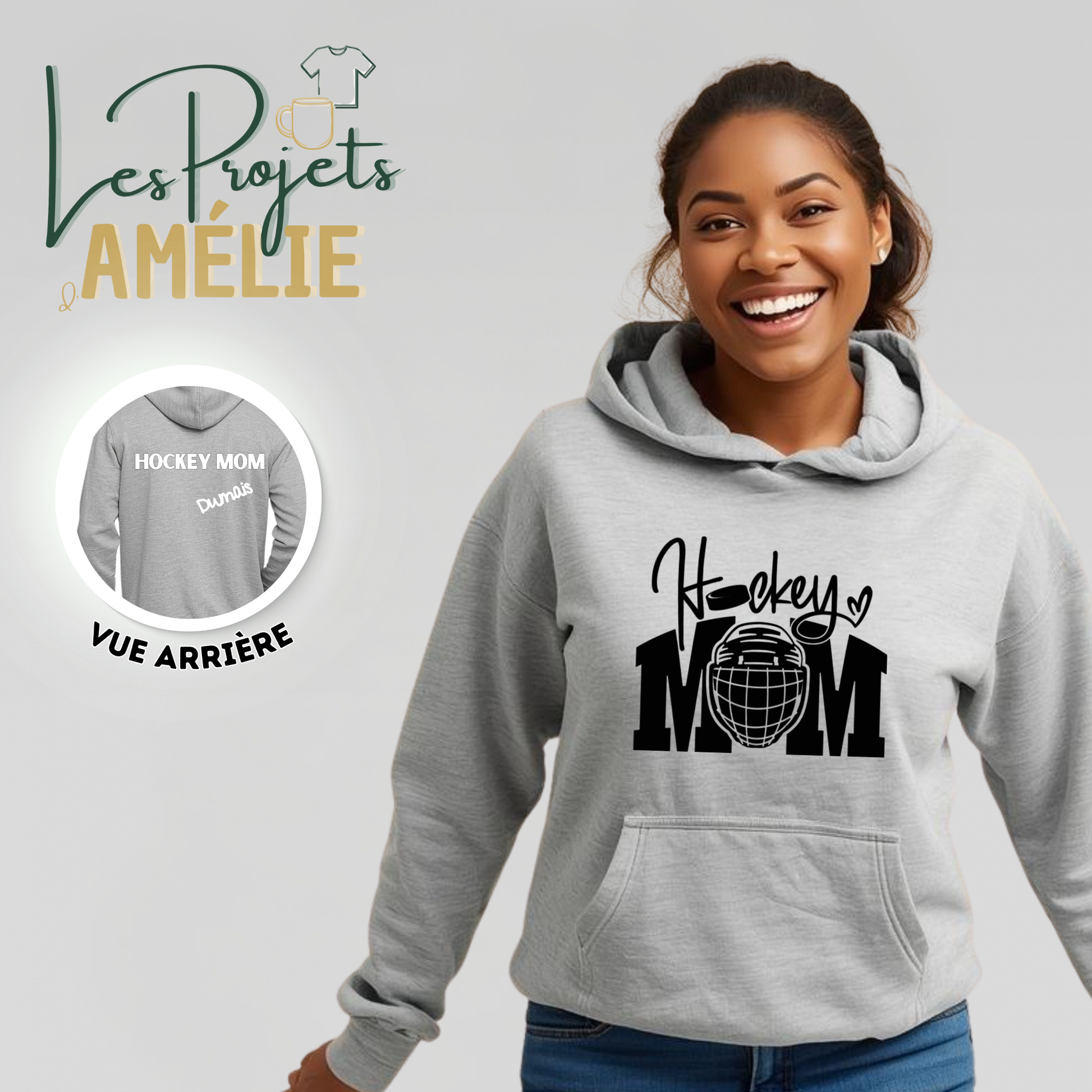 Parce qu’une maman de hockey ne se contente pas de rester dans les estrades — elle encourage, elle vibre, elle vit chaque match! Ce hoodie est pensé pour toi : chaud, confortable et fièrement personnalisé.