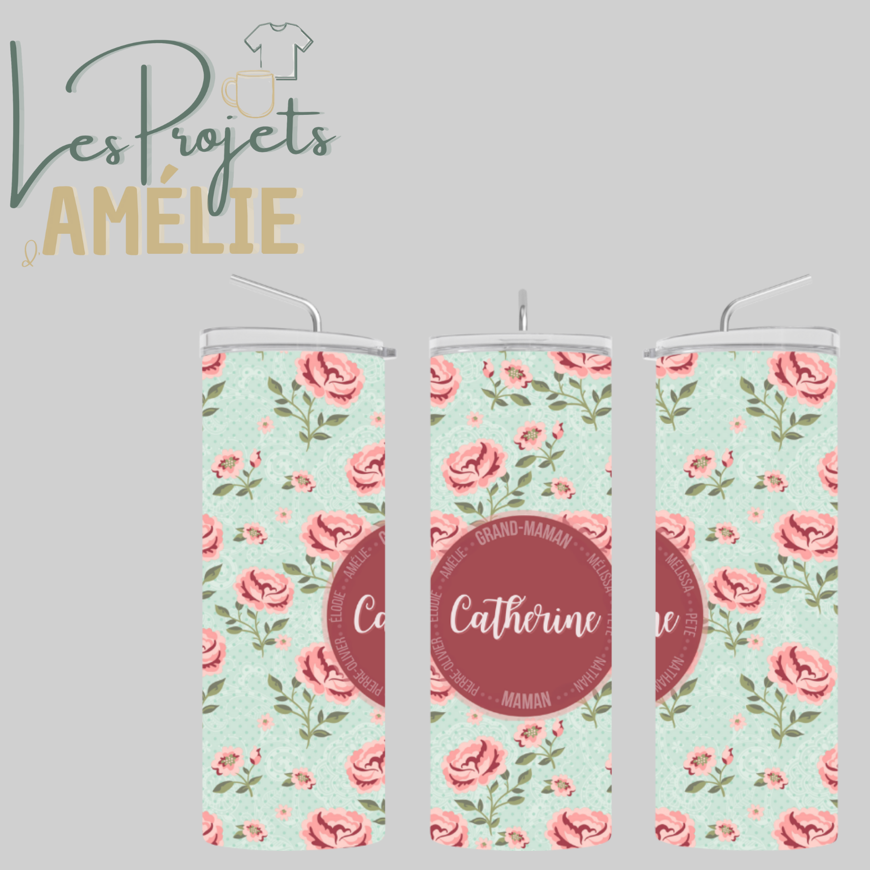 Offrez (ou offrez-vous!) un tumbler unique, personnalisé selon vos goûts et vos envies. Que ce soit un design fun et rétro avec votre prénom, un motif floral élégant pour maman ou grand-maman, ou toute autre idée originale, Les Projets d’Amélie crée des modèles sur mesure qui vous ressemblent.